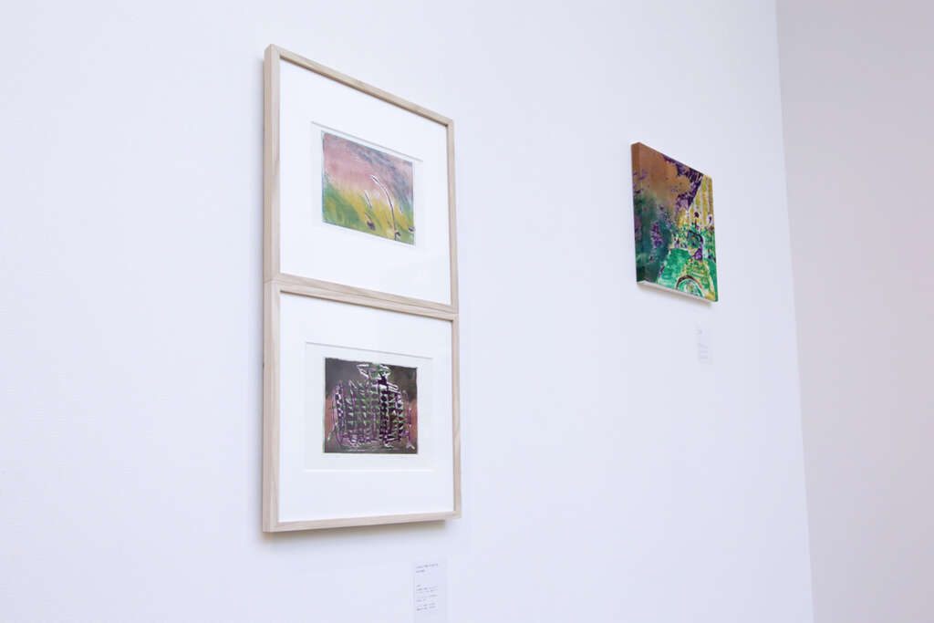 この「GUTIC」への探究・模索はこれまでキャンバス、ユポ紙、錯視、立体造形や映像などの様々な支持体・方法によって表出され てきましたが、中でも特徴的なものとして「ウワガキシリーズ」と呼ばれる一群があります。これは身近な展覧会DMやチラシ、名 画のポストカードなどに掲載されている他人の作品画像に山岡が直接加筆することで、そこにGUTIC(フォルム)を見出すものであり、他者(の表現)において完成(とされる)イメージを出発点に、そこに山岡が勝手にGUTICを発見し、描き出したものです。